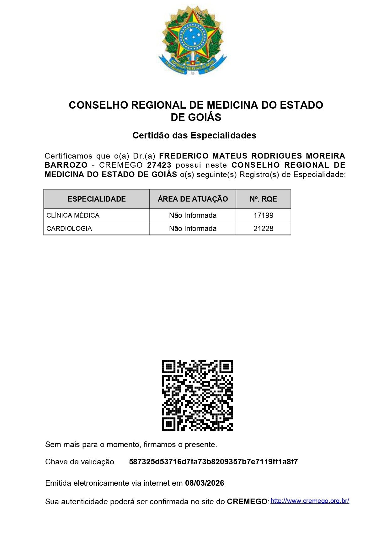 Médico cardiologista, formado pela Universidade Federal do Tocantins, com residência em Cardiologia e Clínica Médica, ambas pela instituição Santa Casa de Misericórdia de Goiânia.